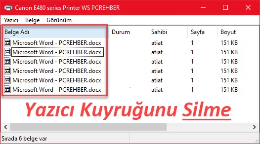 Yazıcı simgesi bulunmuyorsa tüm yazdırma istekleri çıkmış demektedir.